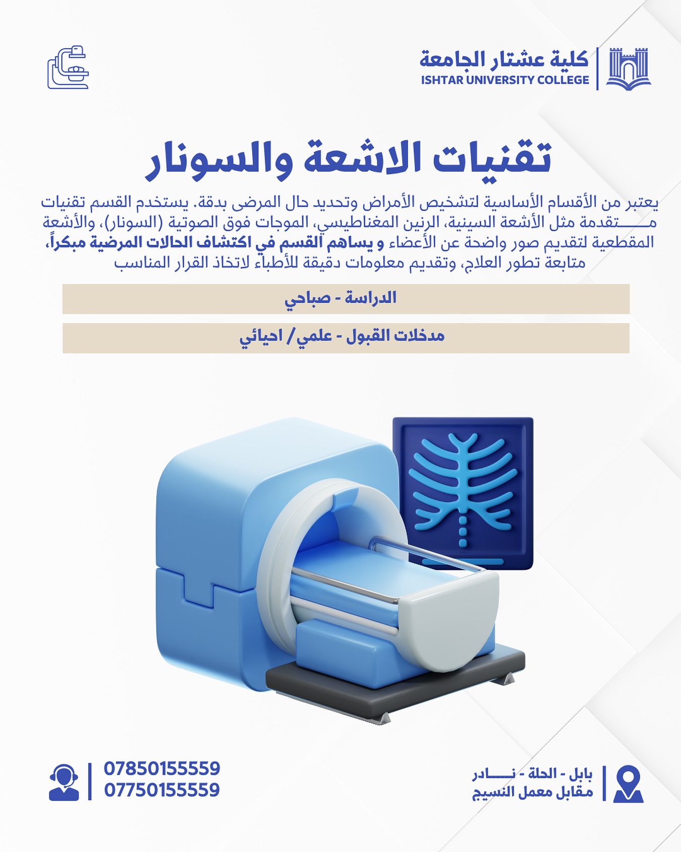 ✨ قسم تقنيات الأشعة والسونار – كلية عشتار الجامعة